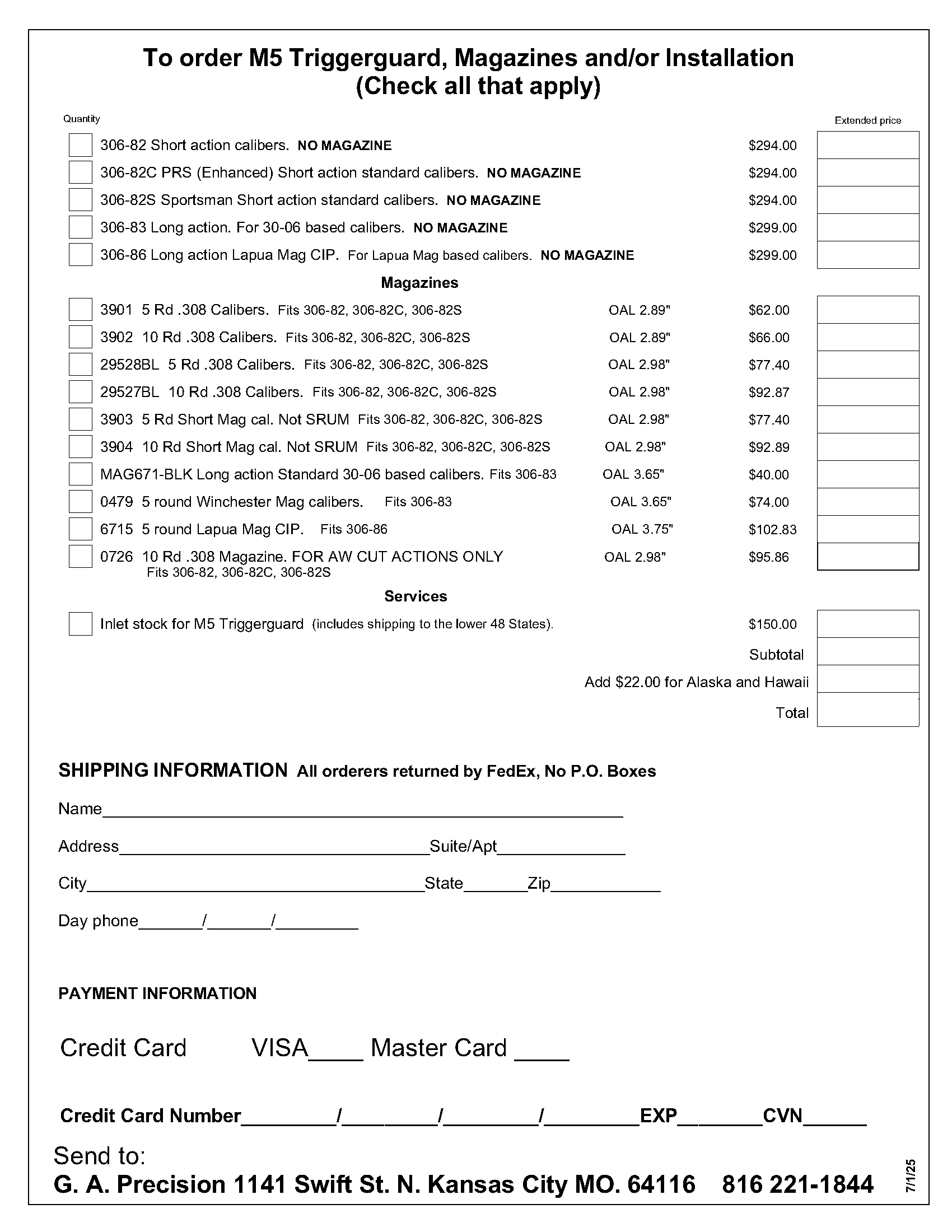 - All prices include return shipping, insured for the replacement value of the item (with the exception of muzzle brake installations).